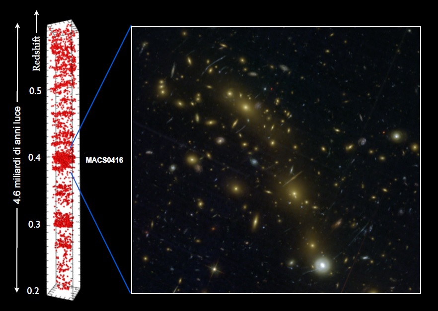 «L’utilizzo degli ammassi come lenti cosmiche – aggiunge Amata Mercurio dell’INAF-Osservatorio Astronomico di Capodimonte – permette da una parte di studiare la struttura della materia oscura al loro interno e dall’altra di analizzare le proprietà delle galassie a meno di un miliardo di anni dopo il big bang, che altrimenti sarebbe impossibile osservare con i telescopi attualmente in uso».