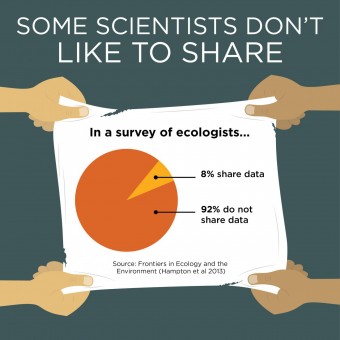 Ad alcuni scienziati non piace condividere il proprio lavoro. Ecco come i creativi della Michigan State University raccontano in un’immagine i risultati dello studio pubblicato su Bioscience.
