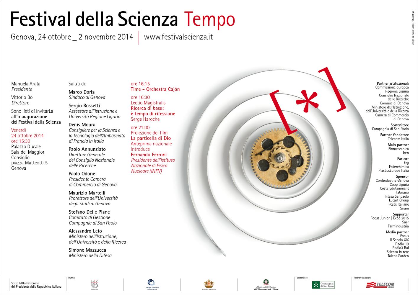 L’Istituto Nazionale di Astrofisica sarà rappresentato anche dal presidente Giovanni Bignami, il quale, il 31 ottobre alle ore 21, terrà una conferenza/spettacolo sul tema dei viaggi nello spazio e della freccia del tempo, dal passato al futuro.