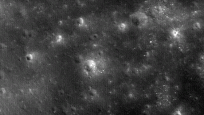 Se gli ultimi istanti della folgorante parabola di LADEE sono memorabili, le sue vestigia sono invece meno appariscenti. Il cratere risultante dall’impatto è infatti piuttosto piccolo, meno di tre metri di diametro, al limite della soglia di visibilità per l’occhio di falco di LRO. Il cratere è piccolo perché il veicolo spaziale, al contrario della maggior parte dei corpi celesti che colpiscono la Luna, non viaggiava molto veloce, ma ad appena un decimo della velocità tipica di un asteroide. Inoltre la massa di LADEE all’impatto era piuttosto contenuta, attorno ai due quintali e mezzo, e la sua densità era tra le sette e otto volte più bassa rispetto a quella di una ordinaria meteorite condritica. Le minute dimensioni del cratere da impatto ne hanno reso difficile l’identificazione tra la miriade di piccoli crateri recenti presenti sulla superficie lunare. Fondamentale è stato quindi il confronto tra le immagini acquisite prima e dopo l’impatto della sonda che, se messe esattamente “a registro” e sottratte nelle parti uguali (compito del sofware di cui si diceva all’inizio), evidenziano immediatamente le modifiche intervenute sulla superficie nell’intervallo temporale intercorso tra i due scatti.