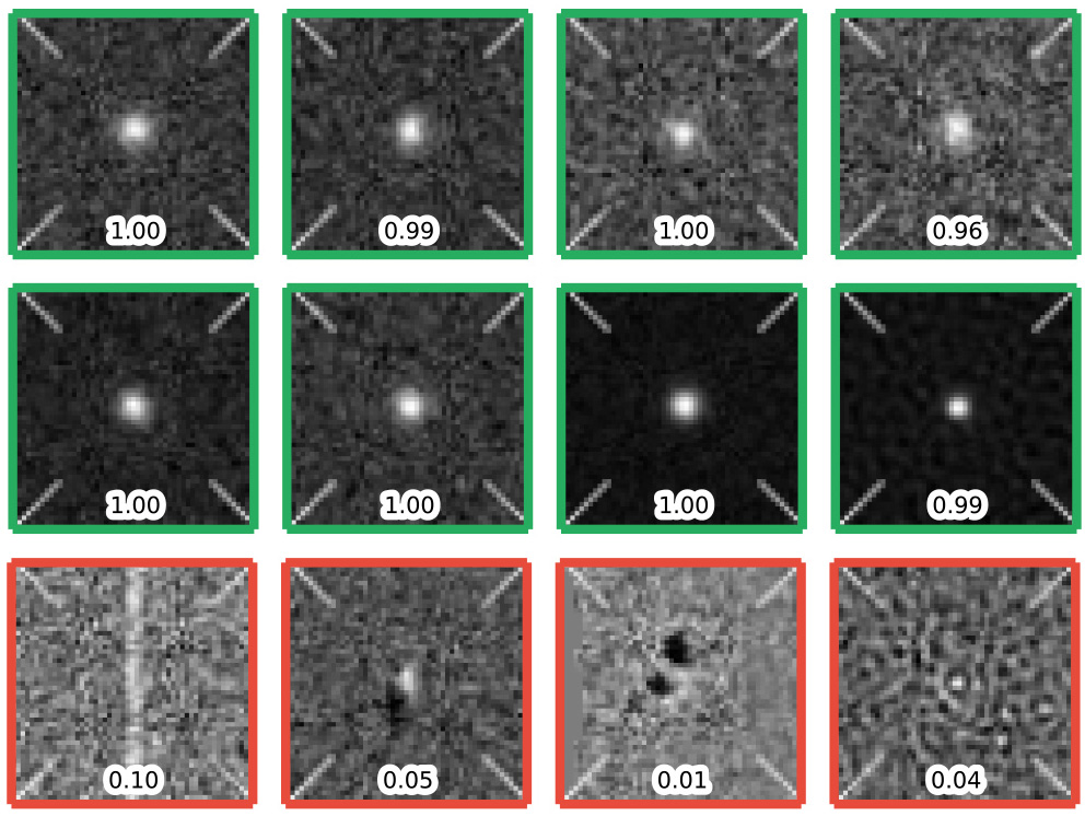 Le sorgenti candidate con il voto loro assegnato dall’algoritmo di riconoscimento automatico. Più si avvicina a 1, più è probabile che si tratti effettivamente d’una supernova. Crediti: Danny Goldstein, UC Berkeley / Berkeley Lab