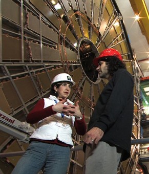 Fabiola Gianotti e David Kaplan nel tunnel di LHC, all’interno dell’esperimento ATLAS (courtesy Cristine Platt Dewey)