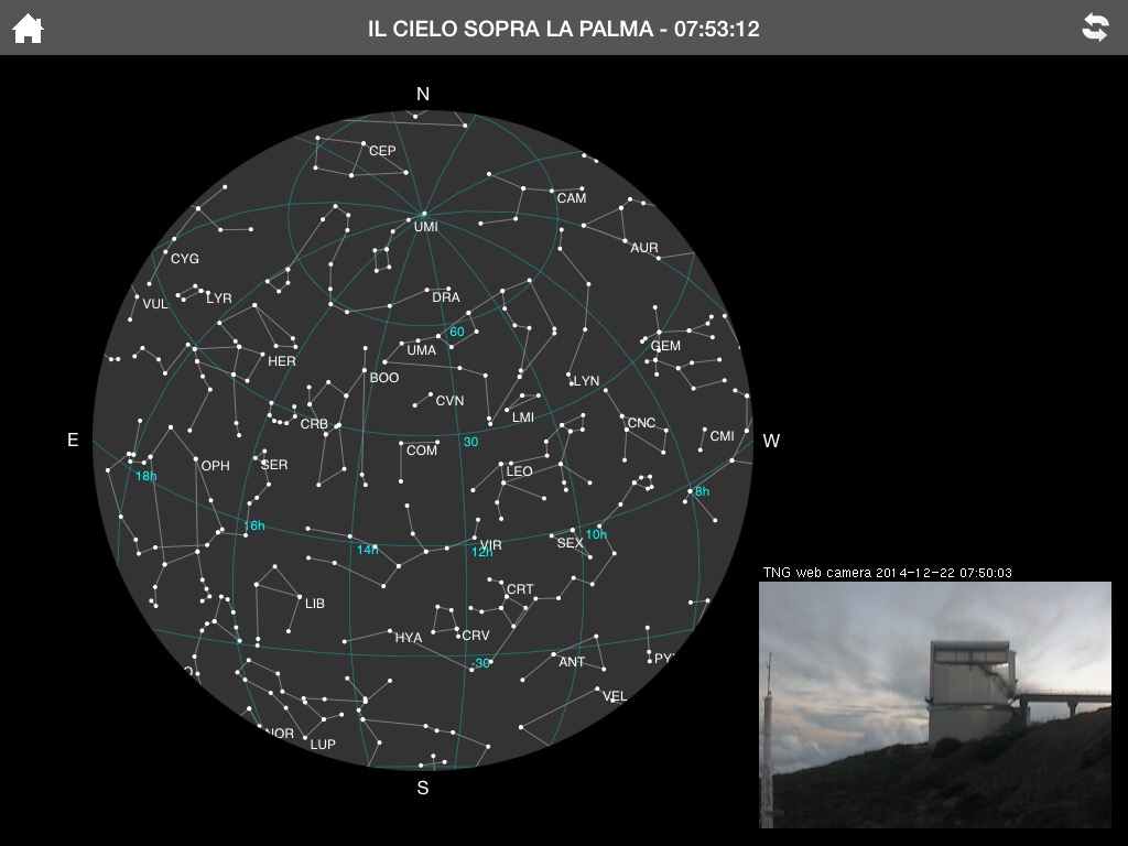 Per finire, in basso a destra, si può ammirare il panorama interattivo dell’Osservatorio di Roque de los Muchachos (ORM), una antica caldera che ospita una impressionante sequenza di telescopi.