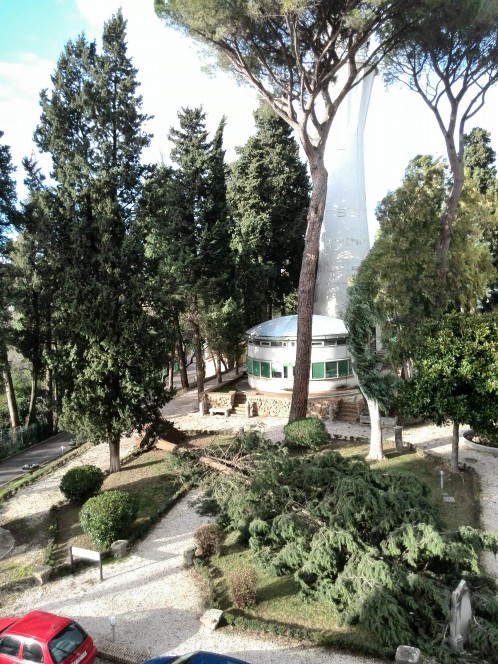 Una violenta tempesta di vento si è abbattuta oggi su Roma: ecco che cosa è accaduto a un albero secolare di 15 metri nel parco di Villa Mellini, Sede centrale dell’INAF: