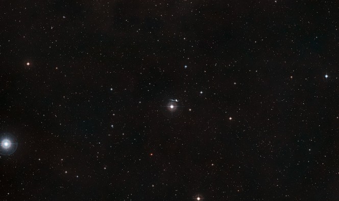La colpevole di tutto, cioè la piccola NGC 7715, si trova appena fuori della cornice di questa immagine. Si possono osservare un anello e due lunghe code di stelle emerse da NGC 7714: il processo distruttivo ha creato un ponte tra le due galassie che trasporta il materiale galattico e stellare. La maggior parte delle attività di formazione stellare è concentrata nel luminoso centro galattico.