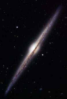 NGC4565 è una galassia a spirale vista di taglio. Le stelle, la polvere e il gas sono concentrati in un disco sottile, molto simile a quello della nostra Galassia. Crediti: Jschulman555