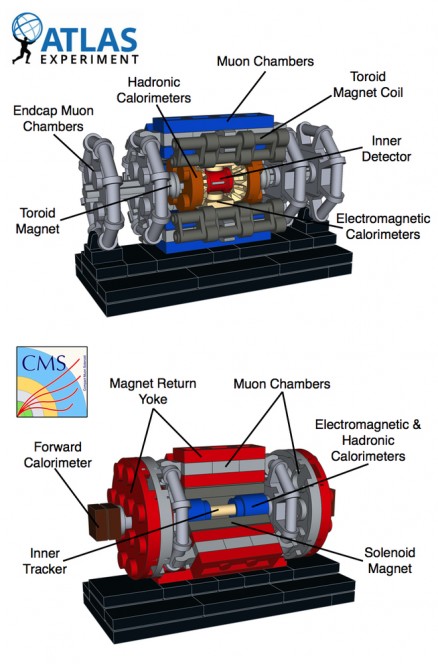 ATLAS e CMS sono rilevatori di grande dimensione, realizzati in collaborazione internazionale da oltre 2000 fisici.