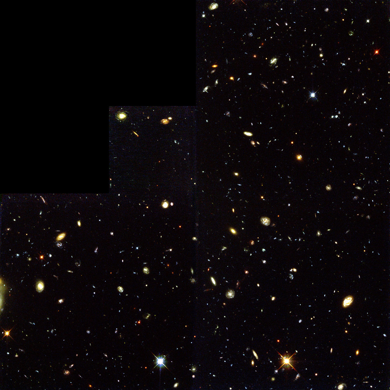 Questa immagine presa dal telescopio spaziale Hubble della NASA/ESA è una delle più profonde dell’Universo in luce visibile/ultravioletta. Mostra una minuscola regione della costellazione meridionale del Tucano, chiamata Campo Profondo Meridionale di Hubble. L’immagine è stata presa dalla camera WFPC2 (Wide Field Planetary Camera 2) nel 1998. La luce proveniente dalle galassie è stata analizzata anche con lo spettrografo STIS (Space Telescope Imaging Spectrograph). Crediti: