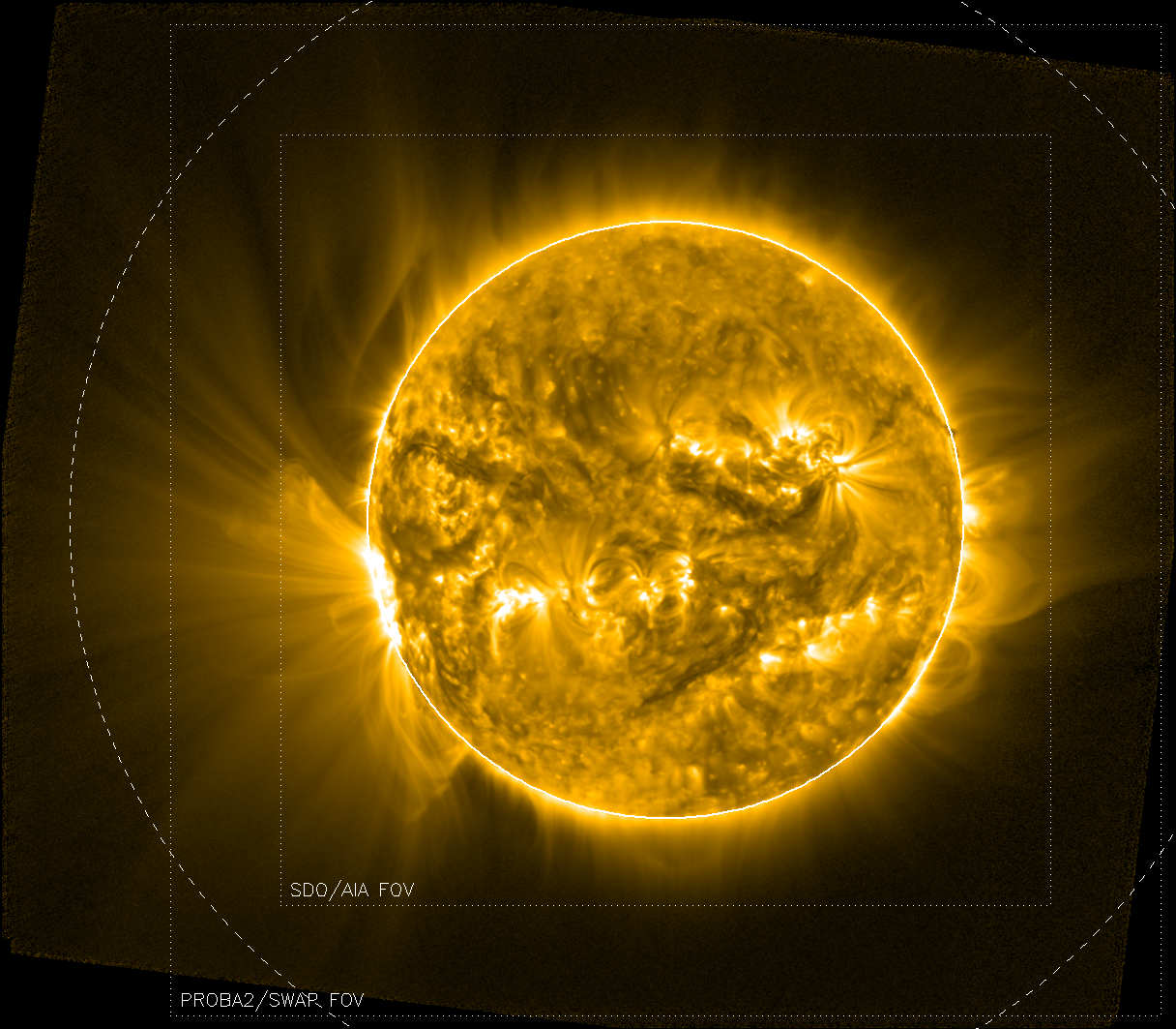 Le immagini negli ultravioletti estremi della corona dinamica del Sole, con le sue eruzioni e il reticolo luminoso di anelli magnetici, sono diventate familiari grazie a telescopi spaziali, come il Solar and Heliospheric Observatory (SOHO) e il Solar Dynamics Observatory (SDO). Ma nuovi dati provenienti dal telescopio SWAP su PROBA2, un mini-satellite europeo lanciato nel novembre del 2009, rivelano una nuovi e sorprendenti comportamenti di questa regione. Se da un lato SWAP conferma la presenza degli anelli magnetici della bassa corona, le nuove osservazioni mostrano che al di sopra di queste strutture caratteristiche vi è una regione dominata da tenui strutture a filamenti che avvolgono gli anelli nella bassa della corona e si estendono verso l’esterno e nello spazio interplanetario.