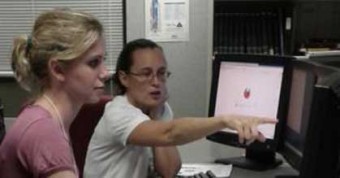 Cecilia McGough, a sinistra, al Green Bank Telescope in West Virginia all’epoca della scoperta della pulsar nel 2012. Crediti: James Mason University