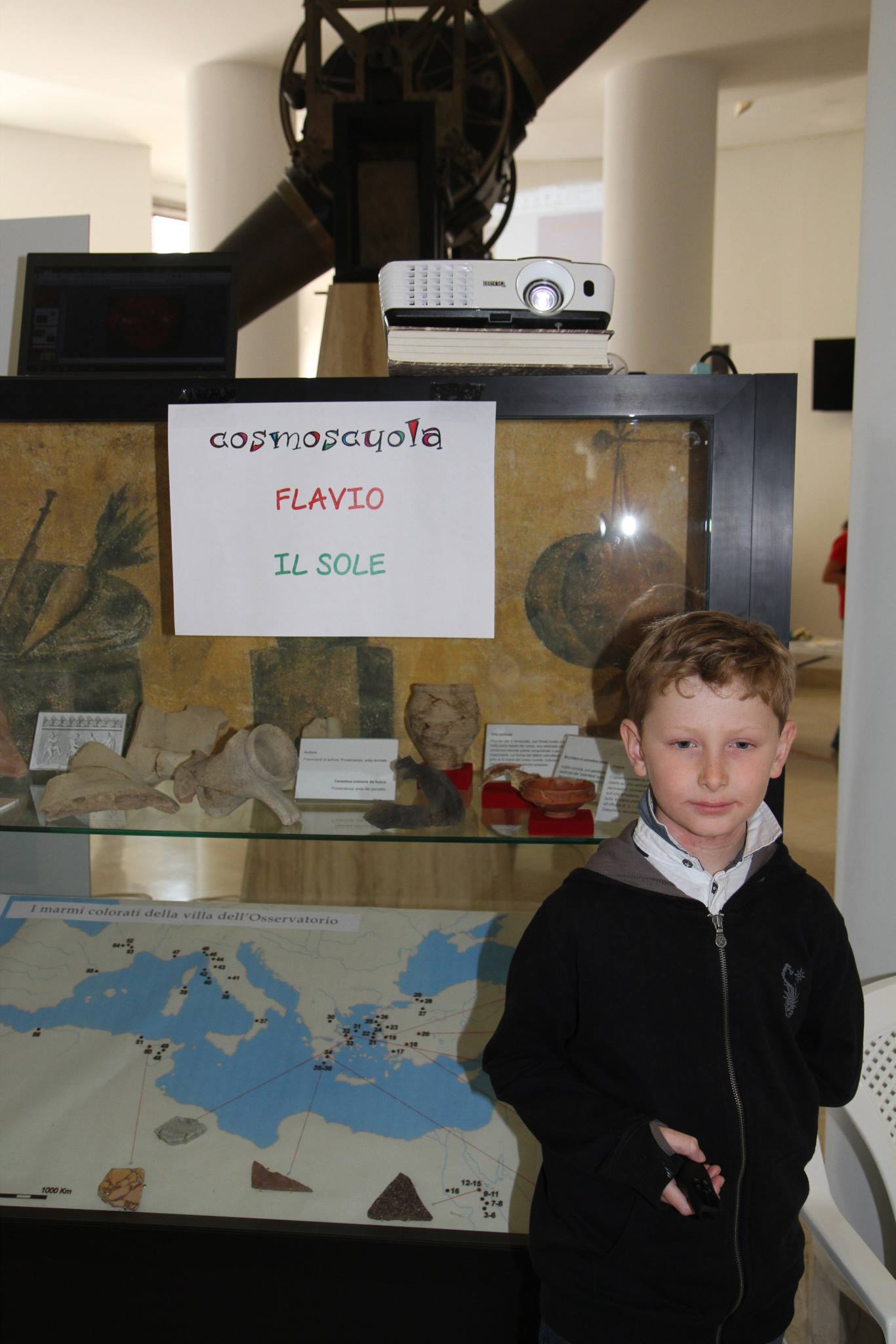La Cosmoscuola 2015 si è conclusa con una vera e propria Fiera Scientifica, dove ogni squadra ha presentato il suo progetto astronomico sotto forma di cartellone/ricerca/presentazione/modellino. L’Osservatorio è stato “occupato” da progetti riguardanti tutti gli argomenti dell’astronomia, studiati e realizzati dai cosmostudenti: dalle presentazioni sul Sole, sul sistema solare, sui pianeti extrasolari o big bang e buchi neri, tenute dagli stessi ragazzi con tanto di puntatore, proiettore e microfono, a cartelloni dettagliatissimi su argomenti che andavano dalle lune dei pianeti gassosi alle onde gravitazionali, dai buchi neri alla vita di una stella, alla storia del big bang o del sistema solare a fumetti. Sono stati presentati anche dei modellini di Rosetta, di missioni spaziali, del Sistema Solare o esperimenti sul magnetismo terrestre o sulle onde gravitazionali tutti costruiti dagli stessi ragazzi.