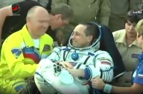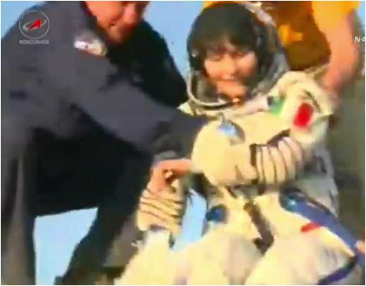 Astrosamantha è uscita per seconda dalla Soyuz – dopo il comandante russo e prima del collega americano – con il sorriso che l’ha resa popolare. I tre sono stati subito accompagnati sulle poltrone da dove per la prima volta dopo mesi hanno potuto godere dell’aria fresca e delle voci di amici e colleghi lì ad accoglierli.