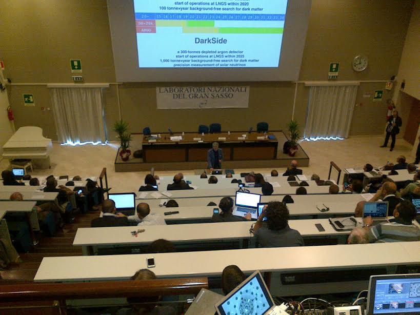A sostenere il progetto anche la National Science Fondation, la maggiore istituzione USA per la ricerca. Gli Stati Uniti, dopo la Germania, sono i principali partner dei Laboratori Nazionali del Gran Sasso, un laboratorio unico al mondo, voluto, come ha ricordato Fernando Ferroni, proposto da Antonino Zichichi e che ebbe, in soli due anni, il via libera governativo e parlamentare. «Altri tempi», ha sottolineato Ferroni che ha ricordato come questo progetto non avrebbe avuto vita se non avesse avuto i contorni di valenza industriale dimostrati, soprattutto per la ricaduta nel nel nostro paese e non si fosse avuta «la convinzione di costruire il miglior rivelatore possibile nel suo campo per la ricerca dell’elusiva materia oscura».