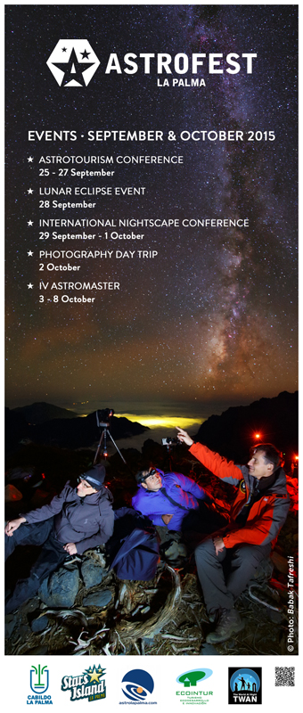 Proprio La Palma diventerà dal 25 settembre all’8 ottobre 2015 il centro di attrazione per tutta una serie di attività – professionali e non – che gravitano attorno all’astronomia. In quelle date la isla bonita darà vita al primo AstroFest La Palma, dove si incontreranno operatori dell’ecoturismo, scienziati, appassionati di fotografia astronomica e della natura in generale.