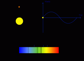 Diagramma schematico dell’Effetto Rossiter-McLaughlin. Crediti: Subaru Telescope,NAOJ L’effetto RM consiste in un’anomalia che si osserva nella velocità radiale quando il pianeta si muove lungo il tratto di orbita che si proietta sul disco della stella. La sua misura permette di determinare l’angolo tra l’asse di rotazione della stella e quello dell’orbita del pianeta. Il valore di questo angolo, che per nessun pianeta del Sistema Solare supera gli 8 gradi, fornisce indicazioni preziose sui meccanismi che plasmano la conformazione dei sistemi planetari