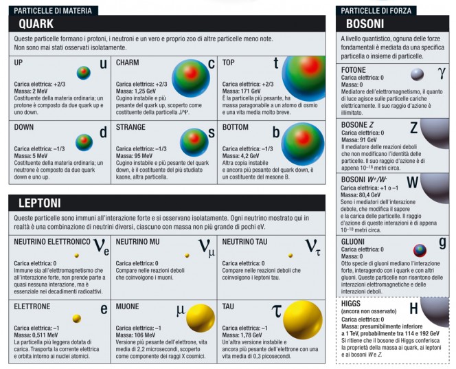 Facciamo un piccolo passo indietro. Il Modello standard delle particelle, pur avendo a prima vista – prendiamo l’impressione a prestito dalle Sette brevi lezioni di fisica di Carlo Rovelli – un’aria “rappezzata e raccogliticcia”, è a oggi quanto di meglio abbiamo a disposizione per descrivere in modo sistematico i mattoncini della realtà. Certo qualche lacuna la presenta: per dirne una, quell’80% di materia che chiamiamo “oscura” – e della quale, a parte il fatto che è tanta, sappiamo ancora poco o nulla – continua a non trovare una collocazione. Ma tutto ciò che oscuro non è sembra invece rispettarne a meraviglia l’architettura.