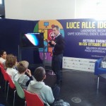 Cesare Lobascio di Thales Alenia Space racconta ai piccoli com’è la vita nelle missioni spaziali e racconta come la luce viene prodotta grazie ai pannelli solari