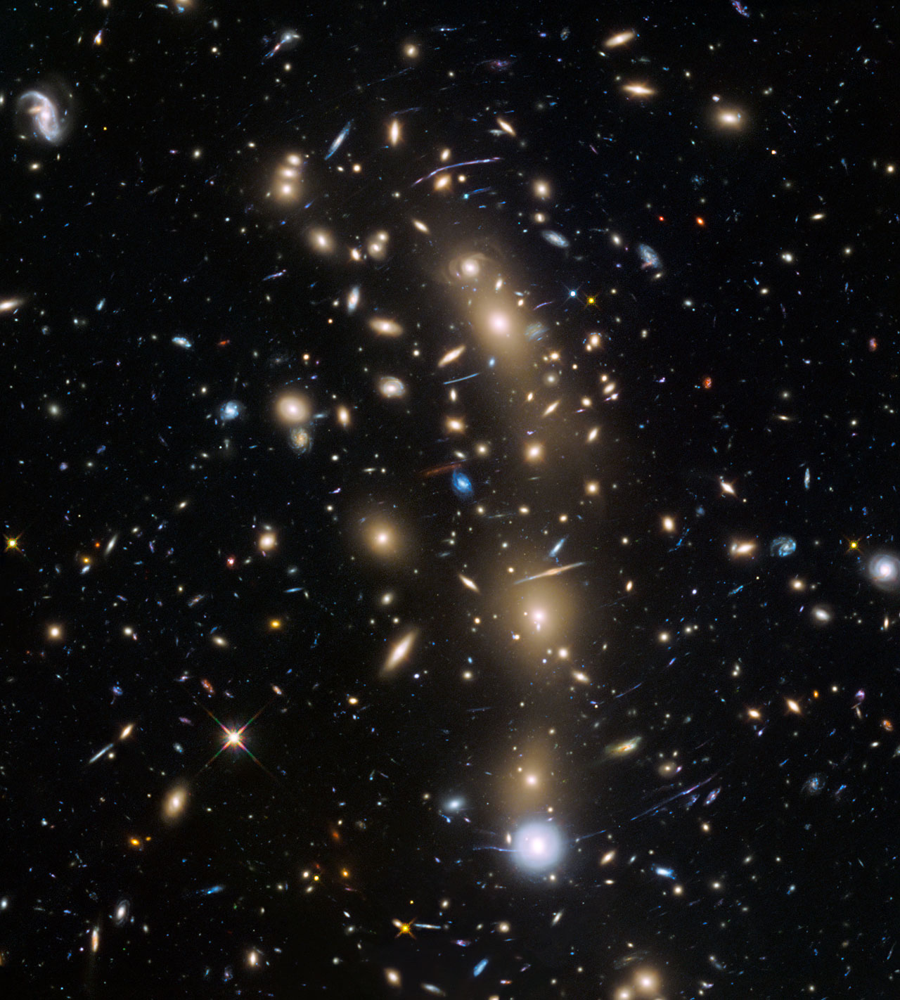L’immagine di Hubble mostra l’ammasso di galassie MACS J0416.1–2403. Uno dei sei studiati nell’ambito del programma Hubble Frontier Fields.