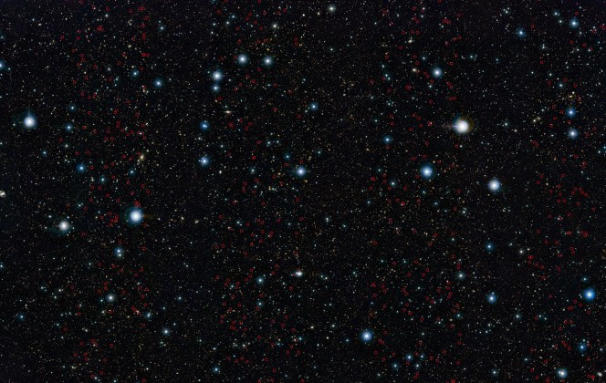 Un’equipe di astronomi, guidata da Karina Caputi del Kapteyn Astronomical Institute all’Università di Groningen, ha portato alla luce molte galassie distanti che erano sfuggite ai controlli precedenti. Hanno usato immagini della survey UltraVISTA, uno dei sei progetti che usano VISTA per analizzare il cielo alle lunghezze d’onda dell’infrarosso vicino, e hanno censito le galassie deboli osservate quando l’età dell’Universo era “solo” tra i 0,75 e 2,1 miliardi di anni. UltraVISTA ha osservato ripetutamente la stessa piccola zona di cielo, grande quasi quattro volte la Luna piena, a partire dal dicembre 2009. È la più grande area di cielo osservata a queste profondità nella banda infrarossa. L’equipe ha combinato i dati di UltraVISTA con quelli del telescopio spaziale Spitzer della NASA, che osserva il cosmo a lunghezze d’onda più lunghe, nell’Infrarosso medio. Il telescopio VISTA dell’ESO osserva nella banda del vicino infrarosso tra 0,88 e 2,15 micron, mentre Spitzer nella banda del medio infrarosso tra 3,6 e 4,5 micron.