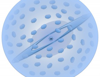 Schema del materiale circumstellare attorno alla supernova, come riportato dagli autori. Nella regione più interna il materiale presentava una forma oblata. I resti stellari espulsi nell’esplosione, interagendo con esso, danno origine alle righe larghe ed asimmetriche dell’idrogeno e dell’elio. Terminata questa fase, circa 150 giorni dopo l’esplosione, i resti espulsi incontrano altro materiale, disposto principalmente in un disco e in agglomerati. Queste tre componenti sono visibili per tutta la durata delle osservazioni, durate circa 15 anni