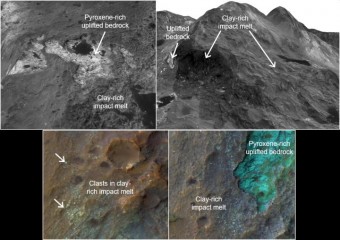 È però il restante 35 percento – una minoranza piuttosto cospicua – ad aver suscitato l’interesse degli scienziati. Si tratta, hanno riscontrato Milliken e Sun, d’argille presenti in dune, su terreni non consolidati e in altre formazioni geologiche non associate a substrati rocciosi. In altri casi, le argille sono state rinvenute in depositi di roccia fusa dal calore dell’impatto e quindi solidificata di nuovo mano a mano che si raffreddava.