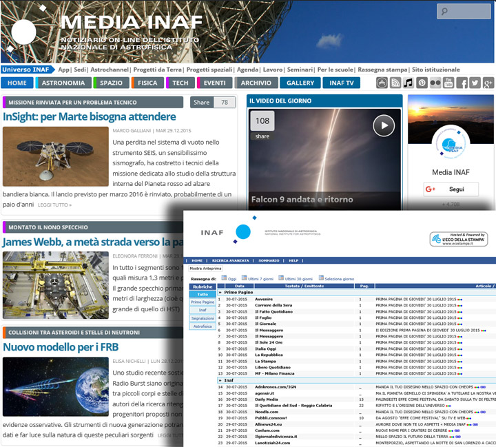 Anche il 2015, ormai agli sgoccioli, è stato un anno da incorniciare per l’INAF. Davvero numerose e di alto livello scientifico sono state infatti le attività che hanno visto protagonista il personale del nostro Istituto. In buona parte ne abbiamo dato notizia attraverso comunicati stampa inviati alla nostra lista di giornalisti e agenzie stampa che, ovviamente, sono stati anche ripresi da Media INAF. Proviamo qui a segnalare quelli che più hanno attirato l’attenzione dei media nazionali, in base ai dati ricavati dalla nostra rassegna stampa. Ma, ci teniamo a dirlo chiaro e forte, questa ‘classifica’ è completamente slegata da valutazioni sull’importanza dei risultati scientifici dei singoli lavori, sia quelli che andiamo a ricordare, sia quelli non menzionati nell’articolo. Importanza che non spetta a noi valutare.