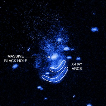 Nei dati di Chandra, Schlegel e i suoi colleghi hanno rilevato la presenza di due archi con intensa emissione di raggi X nei pressi del centro di NGC 5195. «Pensiamo che questi archi siano riconducibili a due enormi esplosioni avvenute durante l’espulsione di materia da parte del buco nero centrale», ha dichiarato la co-autrice Christine Jones dello Harvard-Smithsonian Center for Astrophysics (CfA). «Questo tipo di attività ha avuto un impatto notevole sul panorama galattico, contribuendo a modellarlo come lo vediamo oggi».