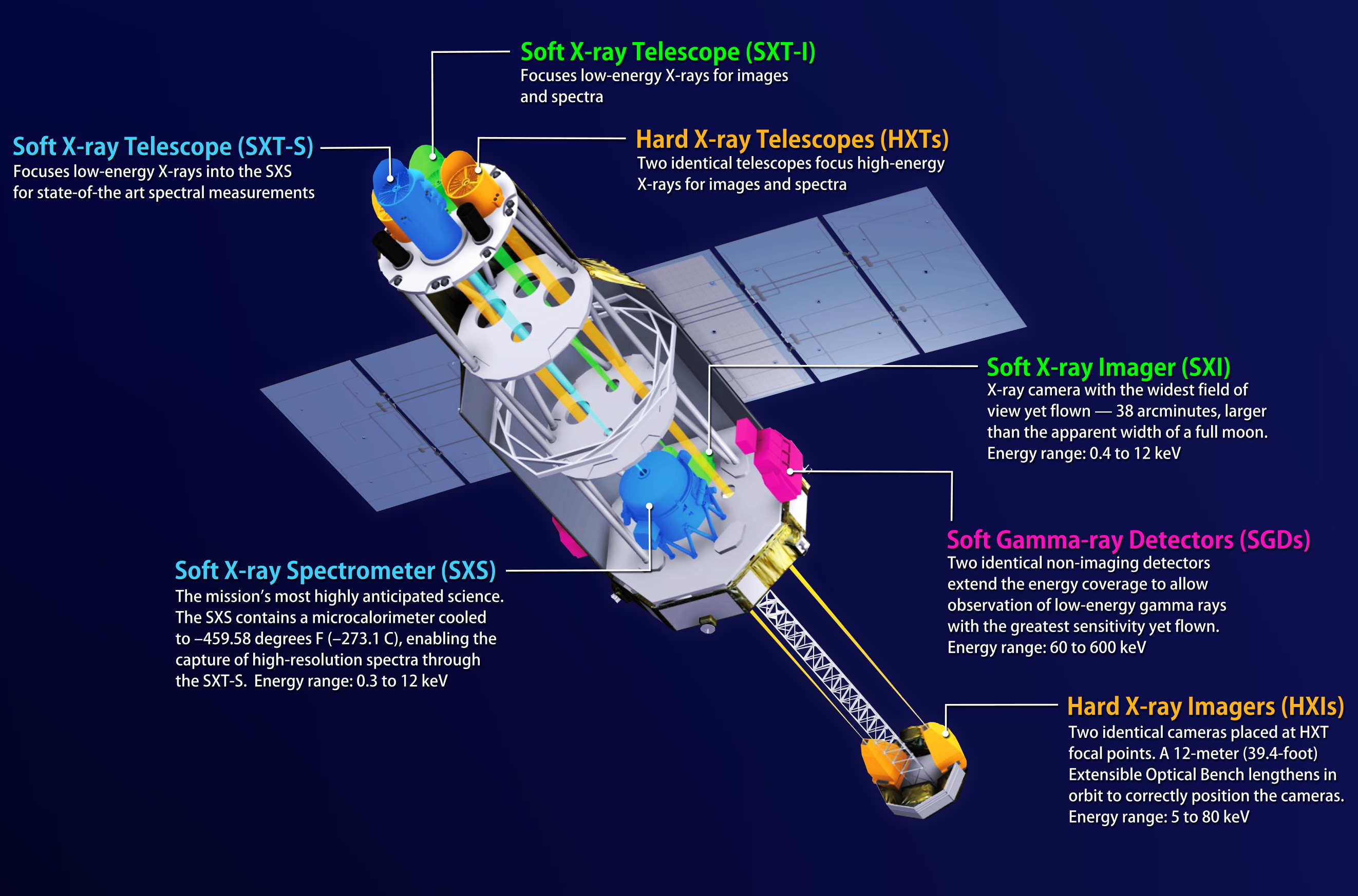 Il sistema di raffreddamento dell’SXS per le operazioni di test – attivato subito dopo il lancio, avvenuto il 17 febbraio – ha raggiunto la temperatura di 50 millesimi di grado sopra lo zero assoluto (-273,1 gradi Celsius) il 22 febbraio scorso. E ora il satellite è in condizioni stabili.