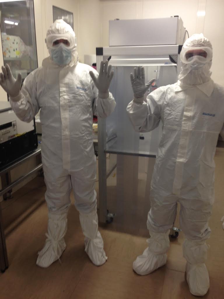 John Brucato ed Eugenio Simoncini, nella camera bianca al CISAS di Padova per le fasi di sterilizzazione di DREAMS