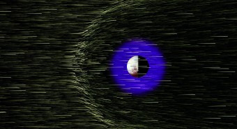 Nell’immagine vediamo che i protoni e gli elettroni provenienti dal Sole vengono rallentati e deviati attorno a Plutone a causa della ionizzazione dell’atmosfera del pianeta e delle correnti elettriche indotte nella sua ionosfera. Crediti: H.A. Weaver et al. / Science (2016)