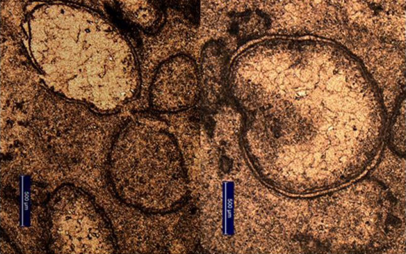 Un’immagine al microscopio delle sferule da impatto ritrovate nel sito di Marble Bar, nel nord ovest dell’Australia. Crediti: A. Glikson