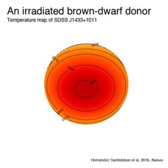 Grazie ai dati raccolti, i ricercatori sono riusciti addirittura a mappare la temperatura della nana bruna in diversi punti della sua superficie, scoprendo che non è uniforme. Questo è dovuto al fatto che il neonato oggetto substellare viene irradiato dalla sua compagna, molto più calda. La mappa di temperatura mostra che il lato rivolto verso la nana bianca e quello opposto presentano una differenza di temperatura media di 57 °C, mentre il punto più caldo e quello più freddo arrivano a uno sbalzo di circa 200 °C.