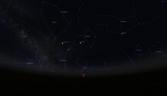 - Simulazione del cielo serale del 30 maggio, alle ore 24, per latitudini dell’Italia centrale. crediti: M. Galliani/Stellarium