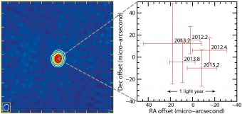 tre anni di accurate osservazioni del getto emesso da Swift J1644+57 con i telescopi della rete EVN mostrano una sorgente compatta e dalla posizione costante. Crediti: EVN/JIVE/J. Yang