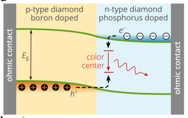 Dal momento che non esistevano teorie che descrivessero l’emissione di fotoni dai centri di colore del diamante (le impurità), non era possibile stabilire il potenziale di queste fonti di fotoni singoli e verificare se potessero essere validi come base per strumenti quantistici del futuro. Sollecitate con l’elettroluminescenza, però, le impurità del diamante hanno prodotto singoli fotoni a temperatura ambiente.