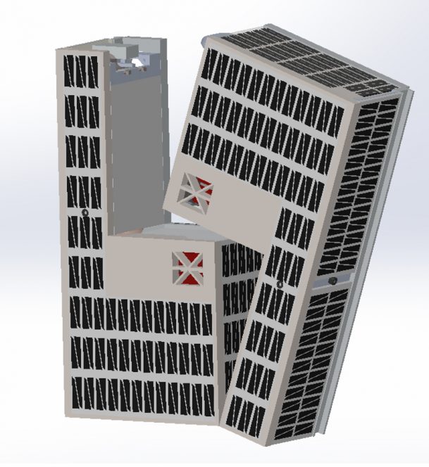 Rendering della separazione in volo dei due moduli a ‘elle’ del CubeSat progettato dai Cislunar Explorers. Crediti: Kyle Doyle