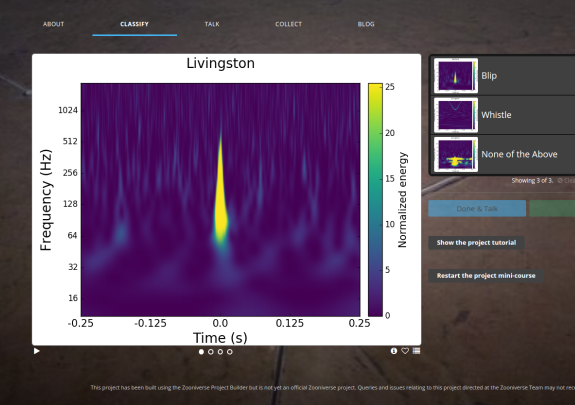 Dopo un periodo di prova iniziato lo scorso giugno, è stato ora lanciato ufficialmente il nuovo progetto di scienza popolare Gravity Spy, all’interno dell’ormai popoloso Zooniverse, il portale che – a partire dal capostipite Galaxy Zoo – ha fornito a milioni di semplici appassionati la possibilità di contribuire alla ricerca scientifica, non solo astrofisica. Nello specifico, Gravity Spy cerca l’aiuto di volontari per analizzare il “rumore” che appare nei rivelatori di onde gravitazionali LIGO.