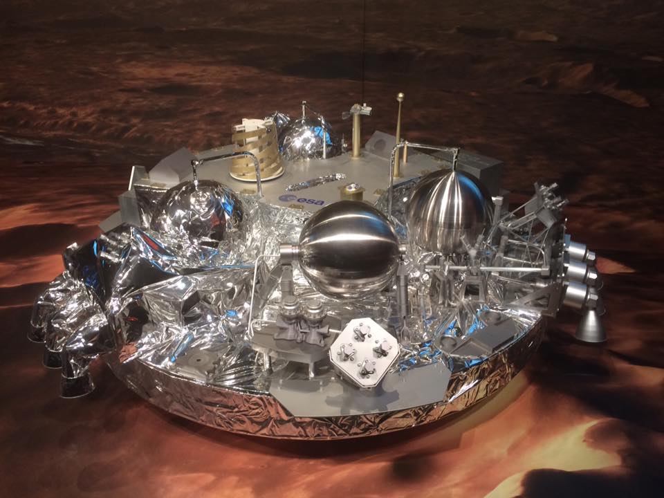 La replica in scala 1:1 del lander Schiaparelli presso lo European Space Operations Centre dell’ESA a Darmstadt, Germania. Crediti: Media INAF
