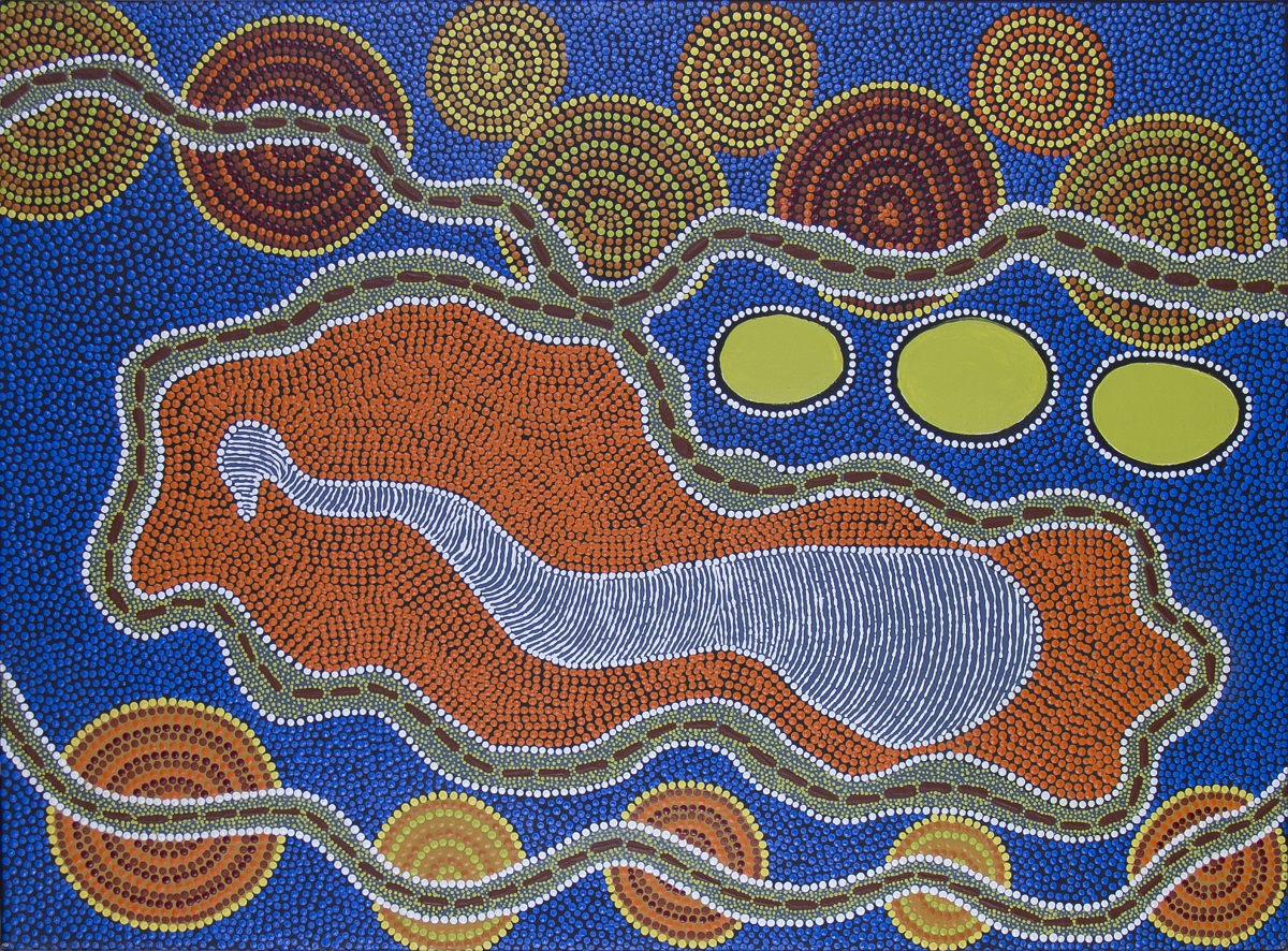 Emù nel cielo, di Margaret Whitehurst, acrilico su tela 52.5cm x 73cm