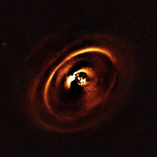 Prendiamo per esempio RXJ1615, una giovane stella, nella costellazione dello Scorpione, a circa 600 anni luce da Terra. Un’equipe, guidata da Jos de Boer, dell’Osservatorio di Leida nei Paesi Bassi, ha trovato un sistema complesso di anelli concentrici che circondano la giovane stella che assomiglia a una versione titanica degli anelli di Saturno. Immagini di una scultura intricata di anelli simile a questa sono state ottenute finora solo per una manciata di stelle. Il disco mostra segni dell’effetto prodotto da pianeti ancora nel processo di formazione.