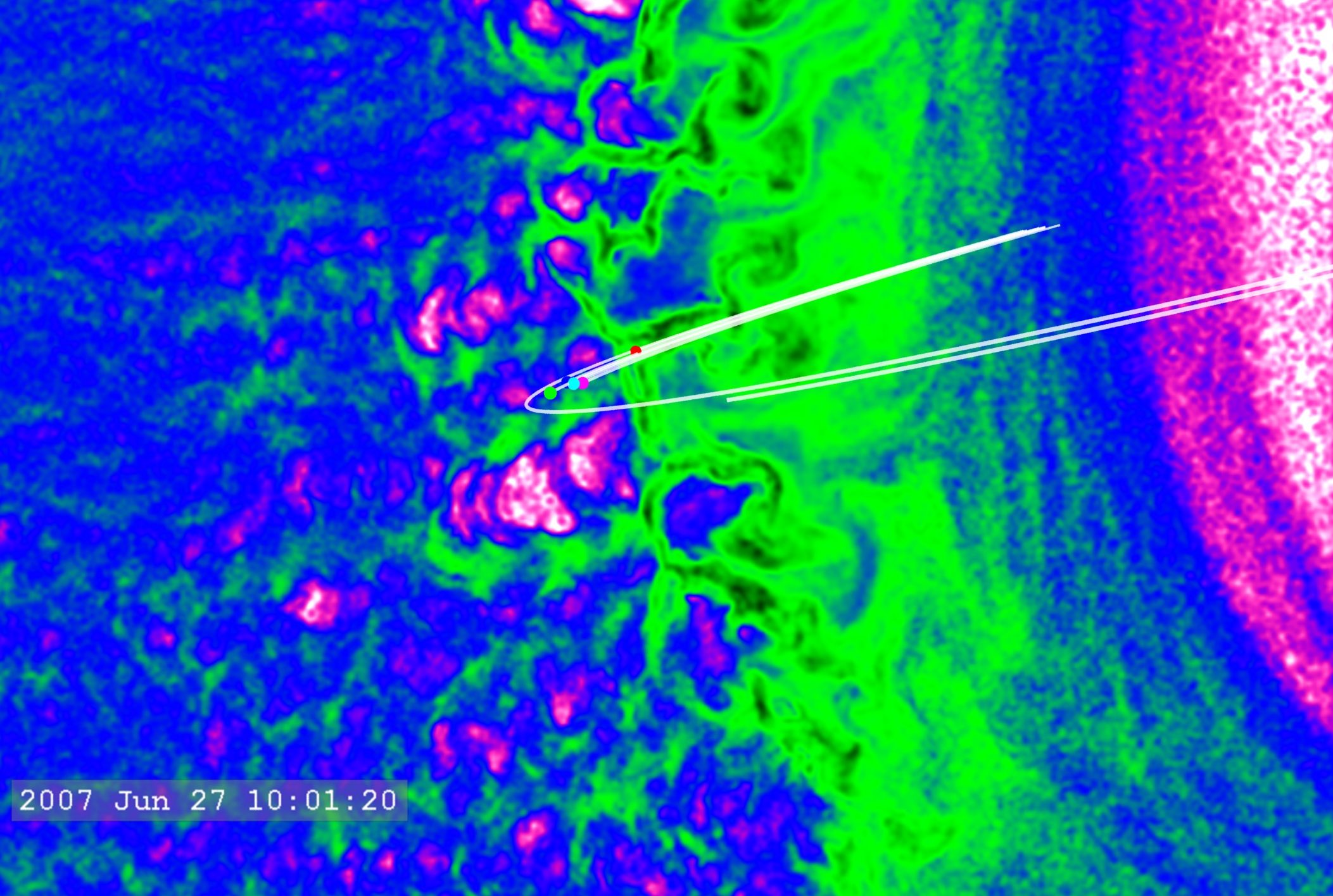 Quando un flusso di particelle cariche si scontra con il campo magnetico terrestre, il fronte d’urto rallenta le particelle, facendo in modo che la maggior parte di esse venga deviata attorno alla Terra, mentre alcune vengono riflesse indietro verso il Sole. Le particelle “rimpallate” permangono in questa zona di “risacca” del vento solare, la zona di foreshock appunto, dove se ne trovano alcune particolarmente veloci: ioni ed elettroni altamente energetici che, sbatacchiati avanti e indietro in una sorta di flipper magnetico, guadagnano un po’ di energia supplementare da ogni scontro con altre particelle.
