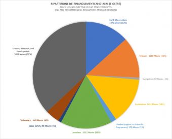 Anzitutto il ritorno di Luca Parmitano nello spazio, che rimetterà piede sulla ISS nel 2019. Poi l’approvazione del progetto guidato dal CIRA e da Thales Alenia Space Italia per lo sviluppo di un veicolo spaziale riutilizzabile, Space Rider, erede designato del piccolo shuttle europeo IXV volato nel febbraio 2015. Quanto al settore delle telecomunicazioni satellitari, l’investimento del nostro paese è praticamente raddoppiato, passando da 50 a 100 milioni.