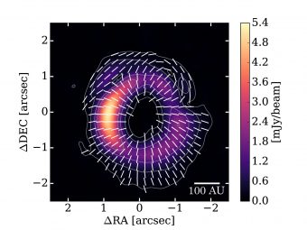 Per verificare l’esattezza della previsione, Kataoka e colleghi hanno utilizzato ALMA per osservare la giovane stella HD 142527, riuscendo a vedere per la prima volta il “modello” di polarizzazione del disco di polvere presente attorno alla giovane stella. Le osservazioni hanno dimostrato quanto previsto, mostrando che la polarizzazione ha una direzione radiale nella maggior parte del disco, ma che ai suoi margini essa diventa perpendicolare a quella radiale.