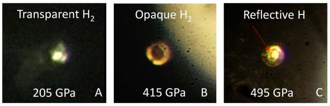 Per crearlo in laboratorio, i due ricercatori hanno torchiato all’inverosimile un minuscolo campione di idrogeno, imprimendogli una pressione di 495 gigaPascal, un livello che non si sperimenta nemmeno al centro della Terra. A tali pressioni estreme l’idrogeno molecolare solido – che consiste di molecole disposte nel reticolo tipico dei solidi – si rompe, e le molecole si dissociano per trasformarsi in idrogeno atomico, che è un metallo.