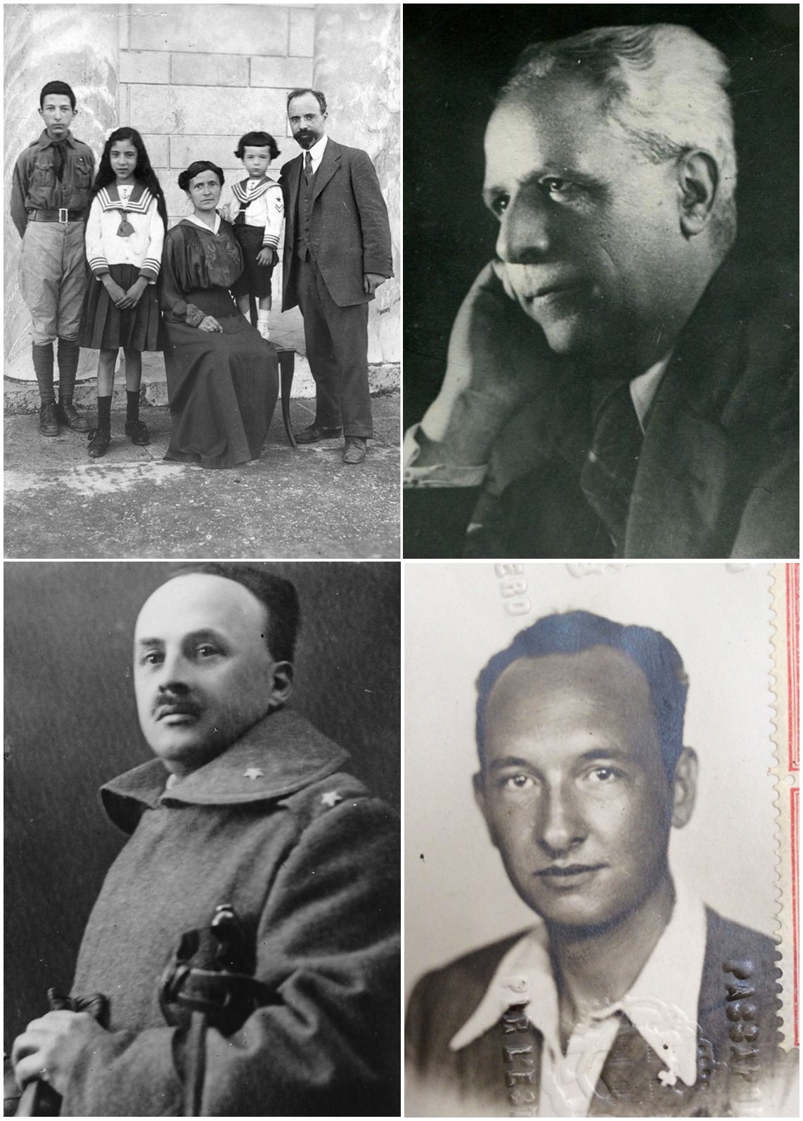 Alcuni astronomi colpiti dalle leggi razziali. In senso orario: Azeglio Bemporad con la famiglia, Giulio Bemporad, Guido Horn D’Arturo e Luigi Jacchia