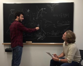 Mauro Fanciulli, alla lavagna, e il suo supervisore di dottorato J. Hugo Dil al Politecnico di Losanna, in Svizzera. Crediti: EPFL