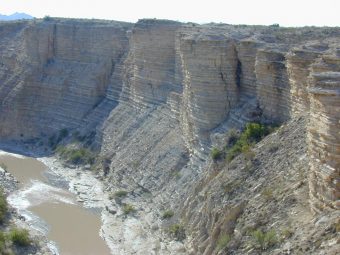 La conformazione rocciosa nei pressi di Big Bend, Texas, mostra strati alternati di scisto e calcare caratteristica della roccia sedimentata sul fondo marino durante il tardo Cretaceo. La roccia conserva la “registrazione” lunga 87 milioni di anni di una transizione di risonanza nelle orbite di Marte e della Terra. È la prova geologica inequivocabile, ritengono gli scienziati, del fatto che le orbite dei pianeti del Sistema solare non hanno un comportamento regolare, quasi periodico, tendendo piuttosto alla caoticità. Crediti: Bradley Sageman, Northwestern University