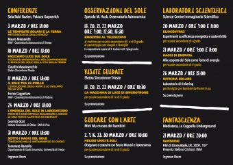 Per tutto il mese di marzo, le iniziative del progetto Helios, dedicate al pubblico e alle scuole, offrono numerose occasioni per imparare a conoscere il Sole: osservazioni astronomiche, visite al Sincrotrone, conferenze, laboratori, film e, per chiudere, il concerto-evento “Heliossea”