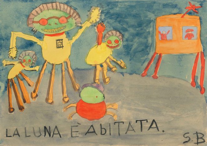 Abbiamo fatto qualche domanda su questo luogo così particolare ad Anna Lehninger, storica dell’arte che ha scritto un libro dedicato ai concorsi di disegno per bambini, e che ha avuto modo di osservare e studiare le migliaia di opere conservate nell’Archivio dei disegni dell’infanzia, per sapere se possono aiutarci a capire come sia l’Universo visto dagli occhi di un bambino.