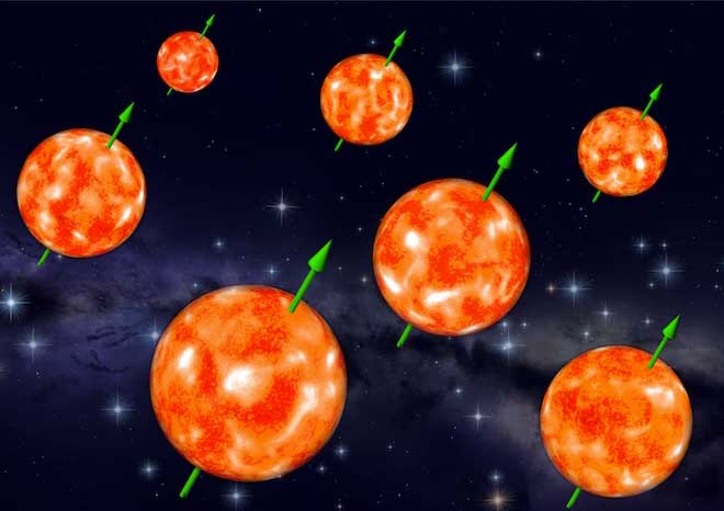 Anche l’orientamento dell’asse di rotazione delle stelle può aiutarci a capire meglio l’ambiente dove esse si sono formate. Così Enrico Corsaro, fellow del programma AstroFIt2 presso l’Istituto Nazionale di Astrofisica (INAF) a Catania, ha guidato un team internazionale di ricercatori per studiare il moto di rotazione di un gruppo di giganti rosse, stelle con massa simile al nostro Sole ma in una fase evolutiva più avanzata, appartenenti a due ammassi stellari aperti. L’analisi delle loro oscillazioni ha permesso di ricavare che gli assi di rotazione delle stelle di ciascun ammasso sono orientati prevalentemente in una specifica direzione nel cielo. Questa condizione porta con sé informazioni su come gli stessi ammassi stellari si sono formati, miliardi di anni fa.